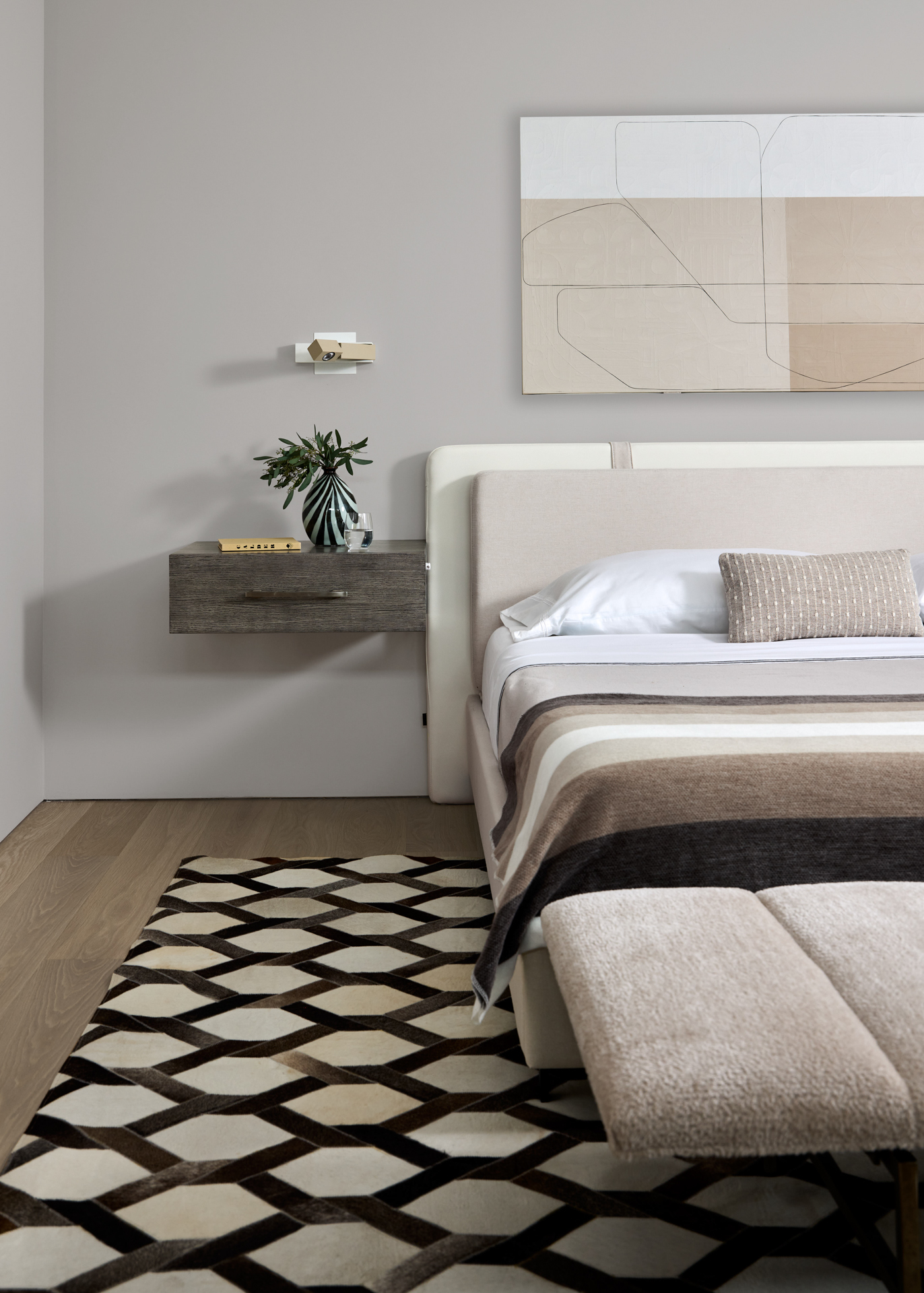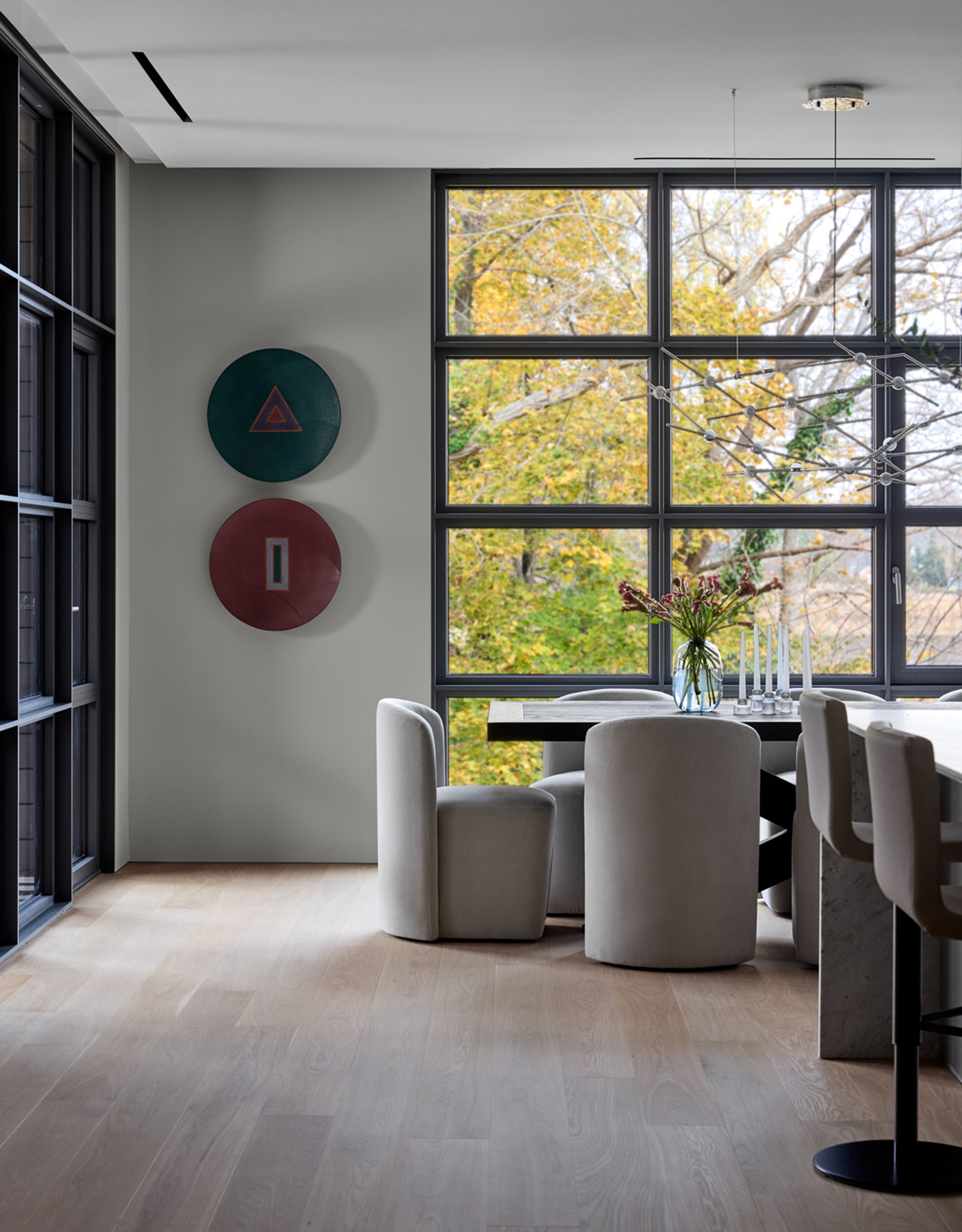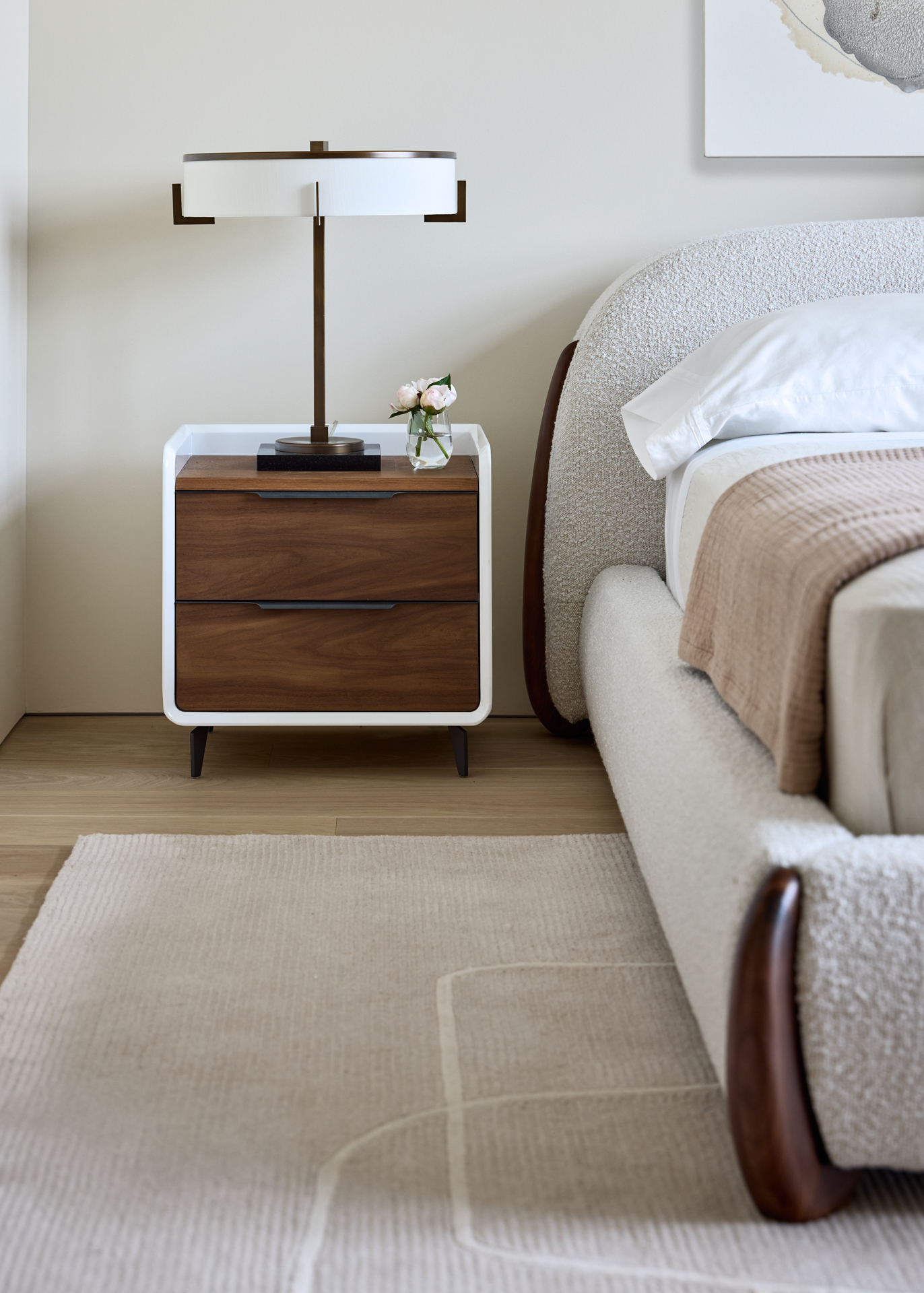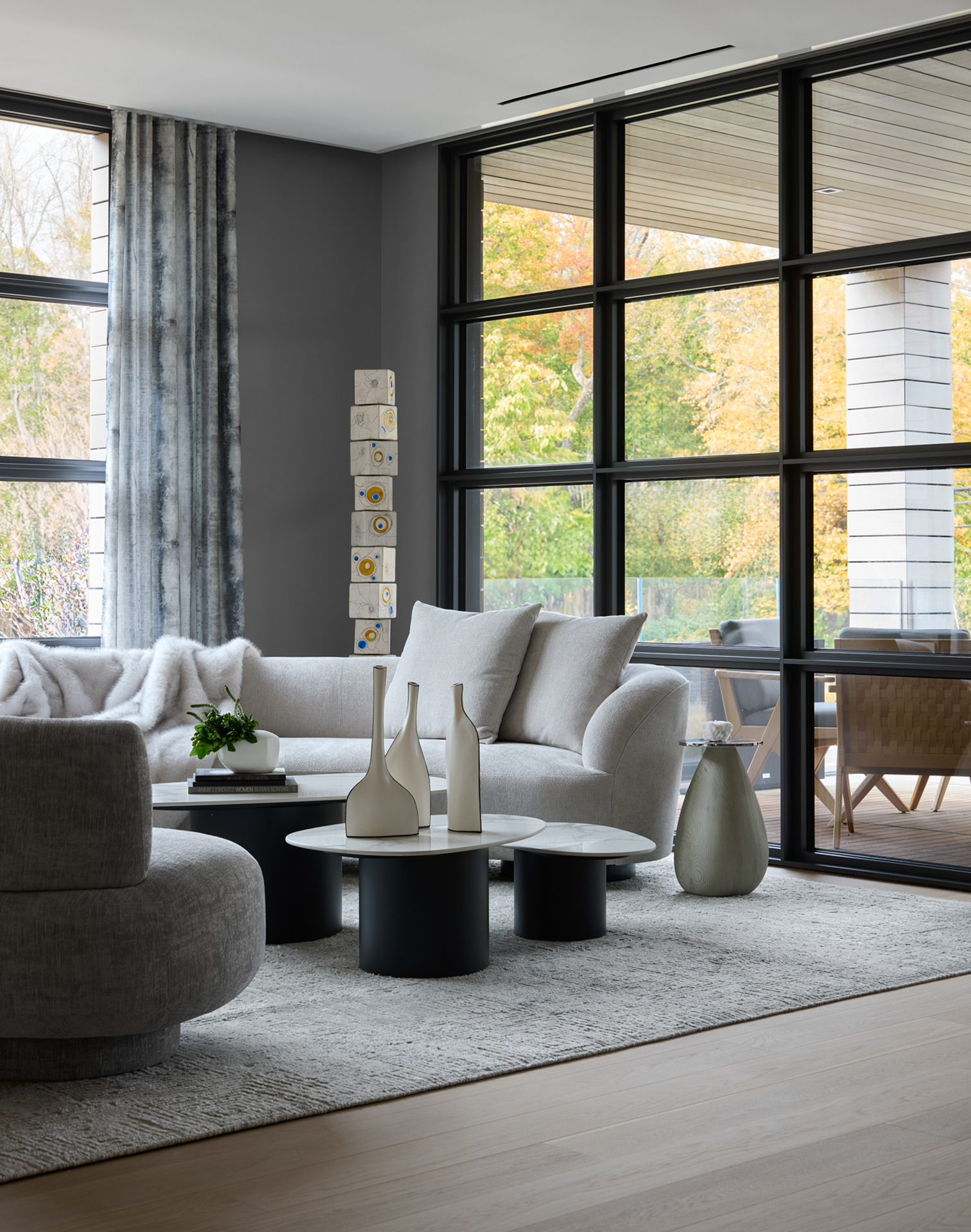 Tucked within a boutique building, this modern condo tempers its crisp, glass-lined architecture with gentle curvilinear forms and a soothing, sculptural quietude. A palette of white oak and warm greige creates an understated foundation, while blackened metal lends an architectural contrast. Cararra marble softens the modern lines with its natural veining and luminosity. Art curated through a local gallery adds depth and narrative, shaping the home into a refined study of comfort, contour, and contemporary elegance.